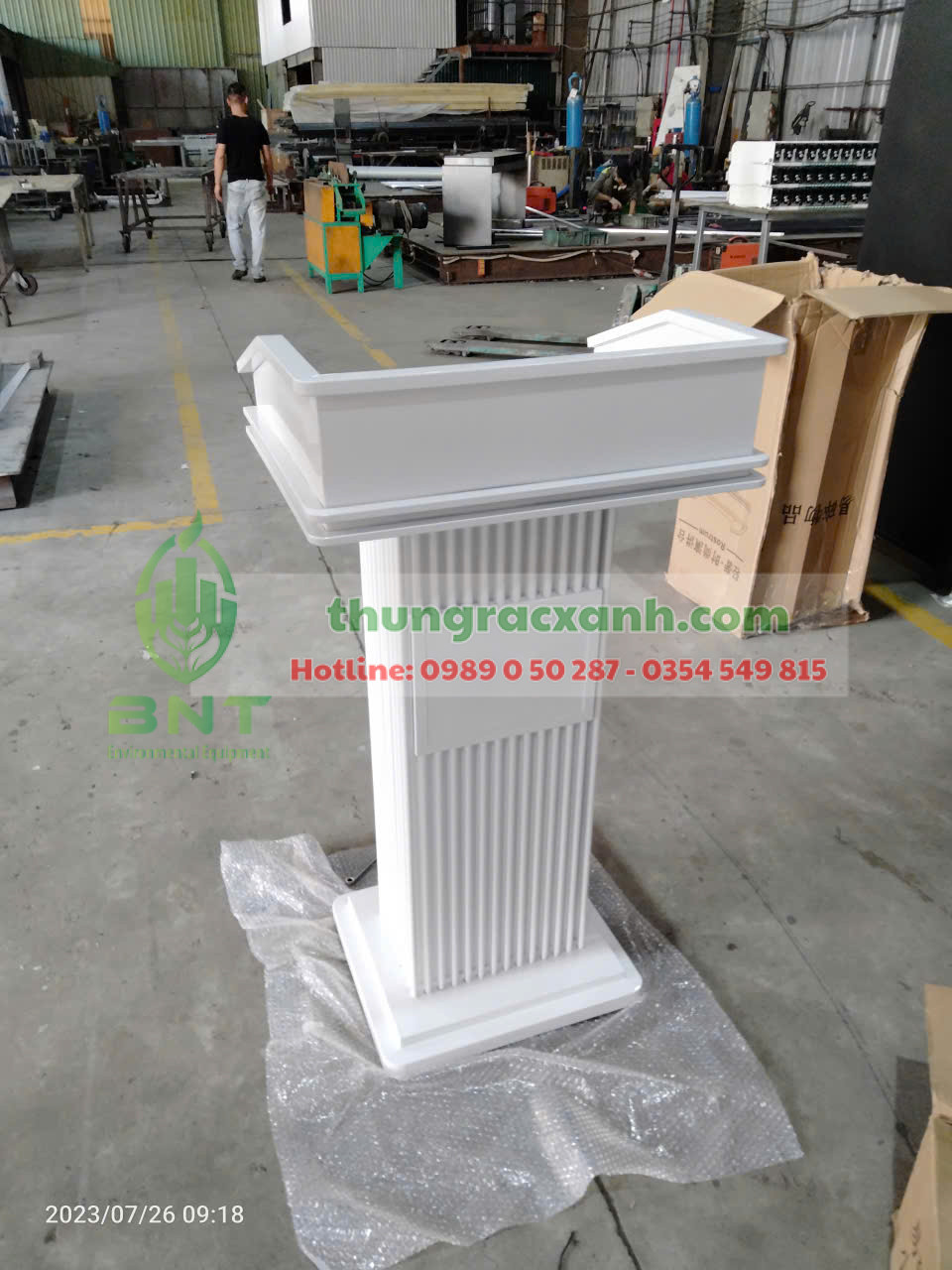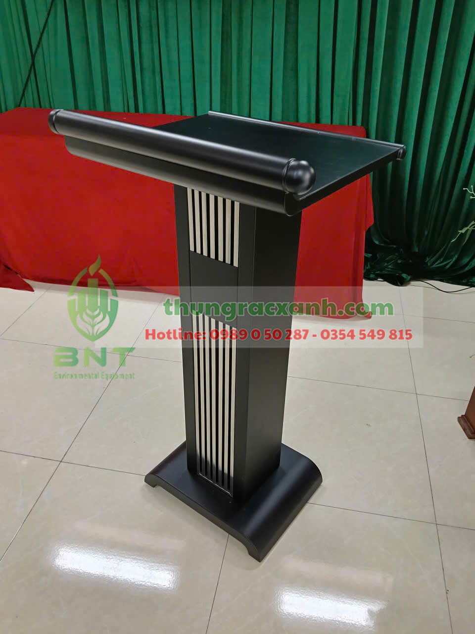 – Bục được thiết kế với kích thước phù hợp cho người sử dụng có thể đứng phát biểu và để tài liệu diễn thuyết hay máy tính…trên mặt bàn mà không sợ rơi rớt đồ bởi xung quanh được bao bởi khung inox chắc chắn