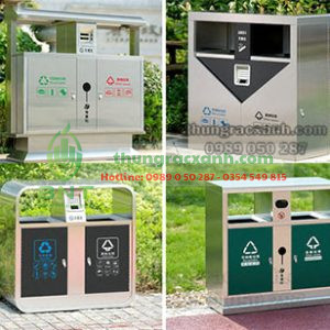 | Thiết kế | 2 ngăn phân loại rác, có mái che, cửa mở phía trước |